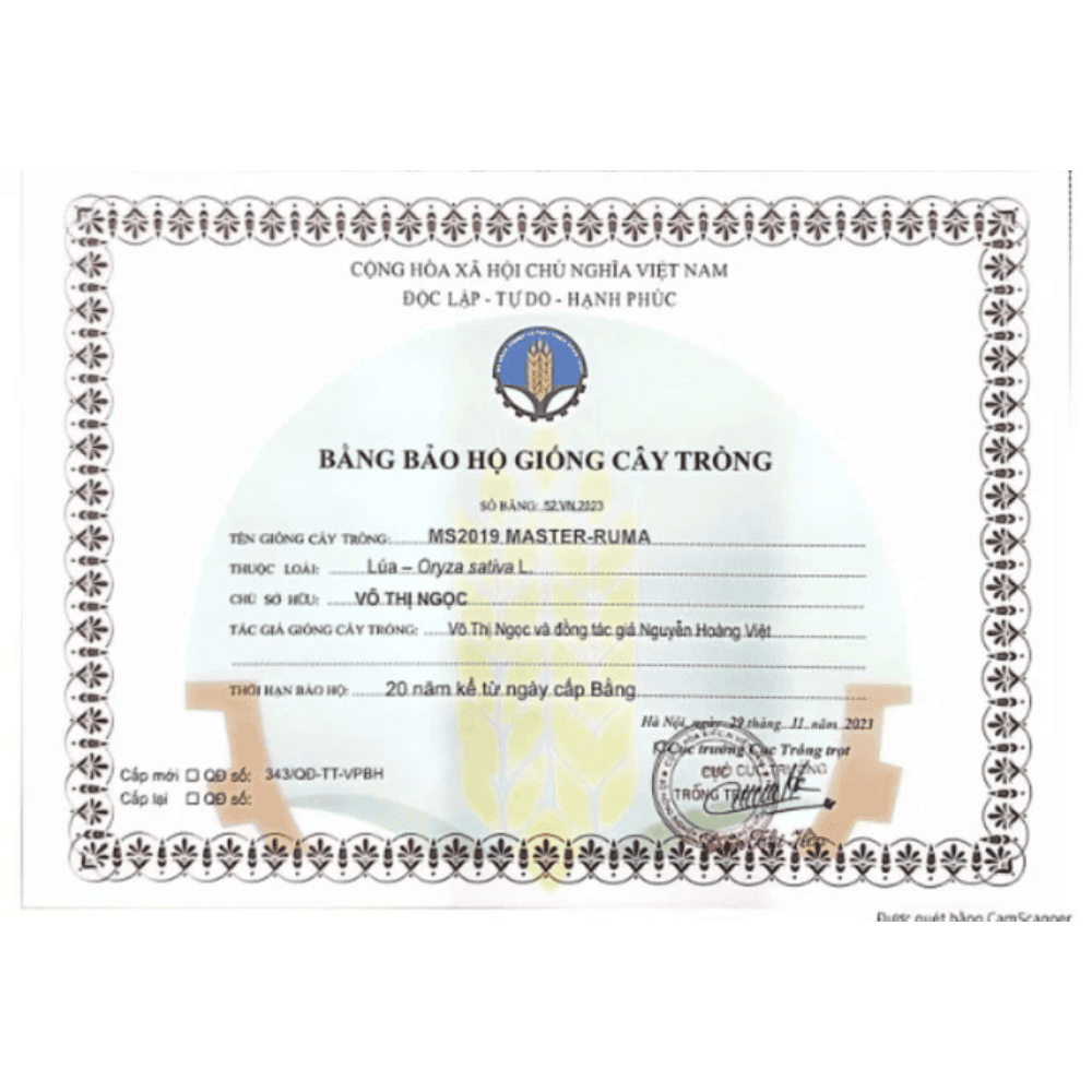 CHỨNG NHẬN GIỐNG GẠO MS2019